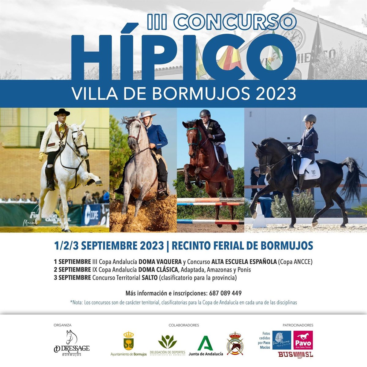 Cartel anunciando el III Concurso Hípico Villa 2023 en Bormujos (Sevilla). - AYUNTAMIENTO DE BOMUJOS