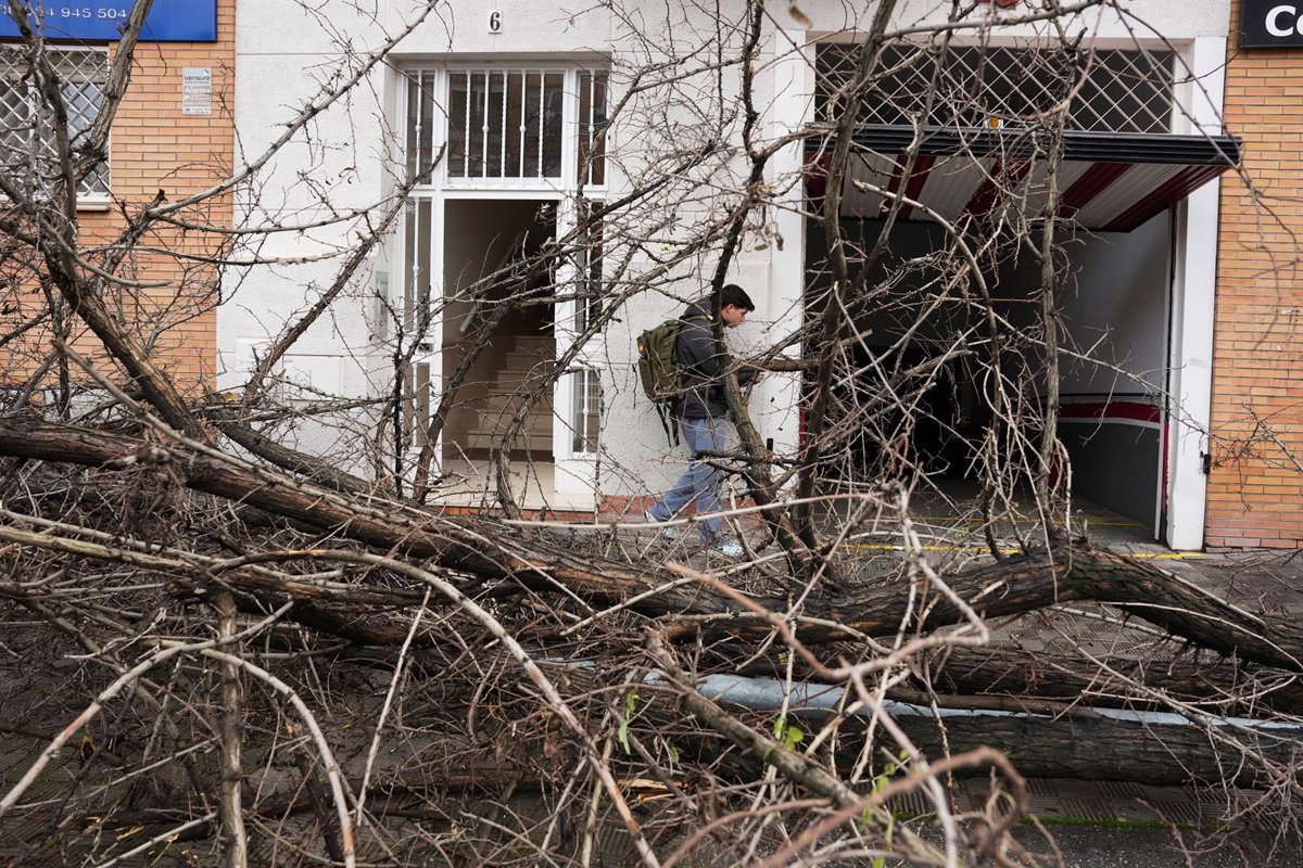 Un árbol de grandes dimensiones caído en la barriada de Pino Montano de Sevilla a causa del fuerte viento del temporal que barre gran parte de Andalucía. A 2 de febrero de 2026 en Sevilla, (Andalucía, España). - María José López - Europa Press