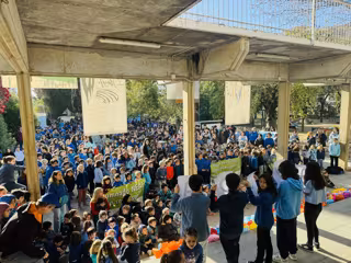 Un total de 1.000 alumnos y alumnas, vestidos de color azul, que se identifica con esta causa, han pedido así más recursos para una educación más inclusiva, que no deje nadie atrás, en igualdad y diversidad, según informa el colegio en un comunicado.