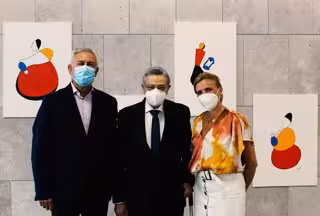 El pintor Antonio Haya hace entrega de sus obras al director médico y directora de enfermería del hospital Quirónsalud - QUIRÓNSALUD