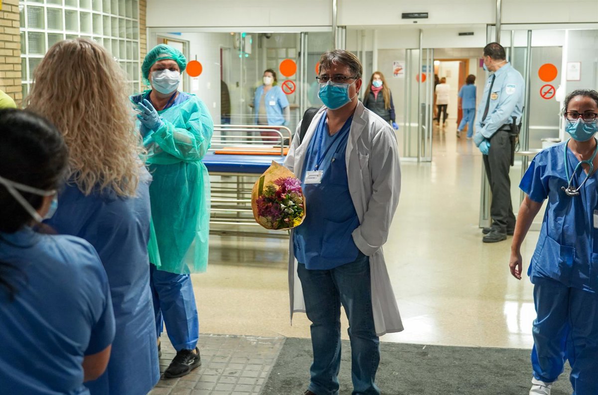 Personal sanitario del hospital Virgen del Rocio de Sevilla aplaude en la puerta de Urgencia del centro - Eduardo Briones - Europa Press - Archivo