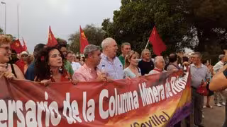 Medio millar de personas, entre ellas la secretaria general de UGT-A, Carmen Castilla, y su homólogo en CCOO-A, Francisco Carbonero, han participado este martes en el homenaje de 'La columna Minera de Riotinto' con motivo del 80 aniversario de la muerte de un grupo de mineros cuando iban a "defender la legitimidad democrática en Sevilla", ciudad que había sido ocupada por el general Queipo de Llano.