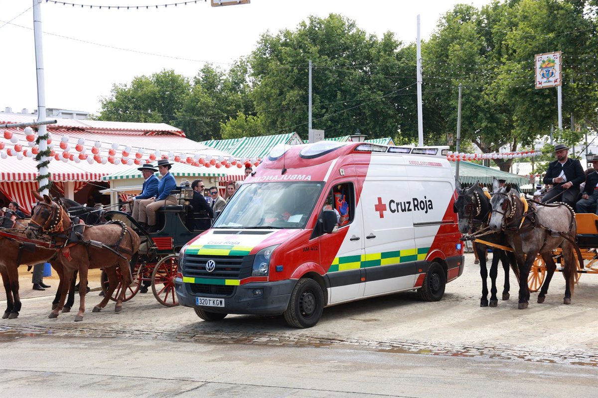 Archivo - Una ambulancia de la Cruz Roja por el Real de la Feria de Abril de Sevilla. Imagen de archivo. - Rocío Ruz - Europa Press - Archivo