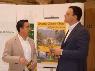 El alcalde de El Castillo de las Guardas, Gonzalo Domínguez, ha presentado este jueves junto al diputado del Área de Concertación, José Barroso, en la Casa de la Provincia, las Jornadas de Turismo Activo del municipio, que se desarrollarán los días 10, 11 y 12 de marzo, con la colaboración de la Diputación de Sevilla, a través de Prodetur.