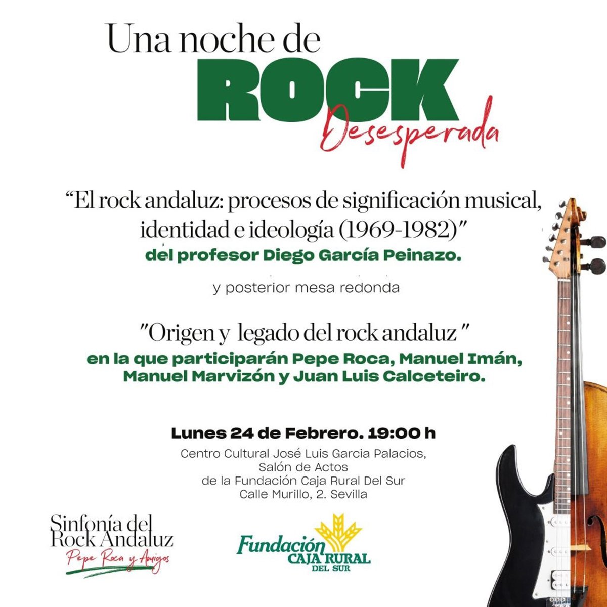 El centro cultural José Luis García Palacios, sede de la Fundación Caja Rural del Sur en Sevilla, acoge este lunes a las 19,00 horas una mesa redonda sobre el origen y el legado del rock andaluz, un encuentro que servirá de punto de partida de la semana del rock andaluz que culminará en Fibes con dos conciertos sinfónicos titulados 'Una noche de Rock Desesperada' y que servirán de homenaje a esta música tan identitaria, en la figura de Pepe Roca.