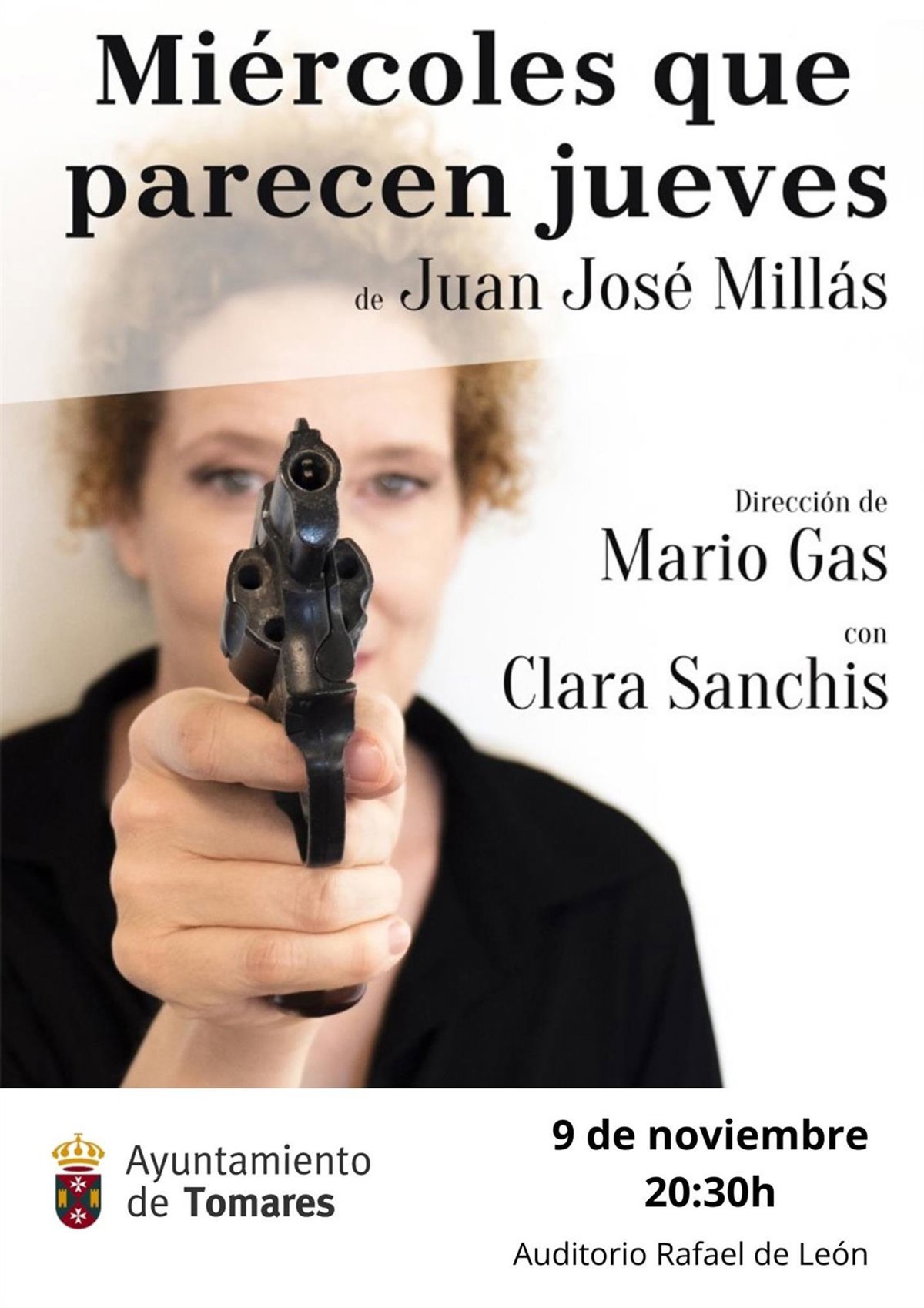 La actriz de cine, teatro y televisión Clara Sanchis, conocida por sus interpretaciones en 'Amar en tiempos revueltos' y en la serie 'Isabel', protagoniza este jueves 9 de noviembre en Tomares (Sevilla) la obra de teatro 'Miércoles que parecen Jueves' (Entrecajas producciones), un exitoso thriller con tono de comedia con el que Clara demostrará que quien domina las palabras, domina la realidad. Será a las 20,30 horas en el Auditorio Municipal Rafael de León.