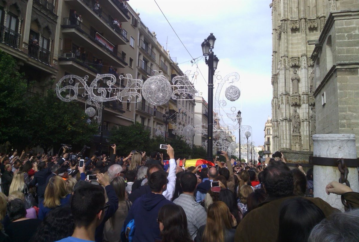 Miles de ciudadanos han despedido este viernes a la Duquesa de Alba, Cayetana Fitz-James Stuart y Silva, en las calles de Sevilla, donde unas 20.000 personas, según fuentes municipales, han esperado en la Plaza Nueva la salida del féretro del Ayuntamiento de Sevilla, donde estaba instalada la capilla ardiente, y el paso del cortejo fúnebre por la Avenida de la Constitución hacia la Catedral.