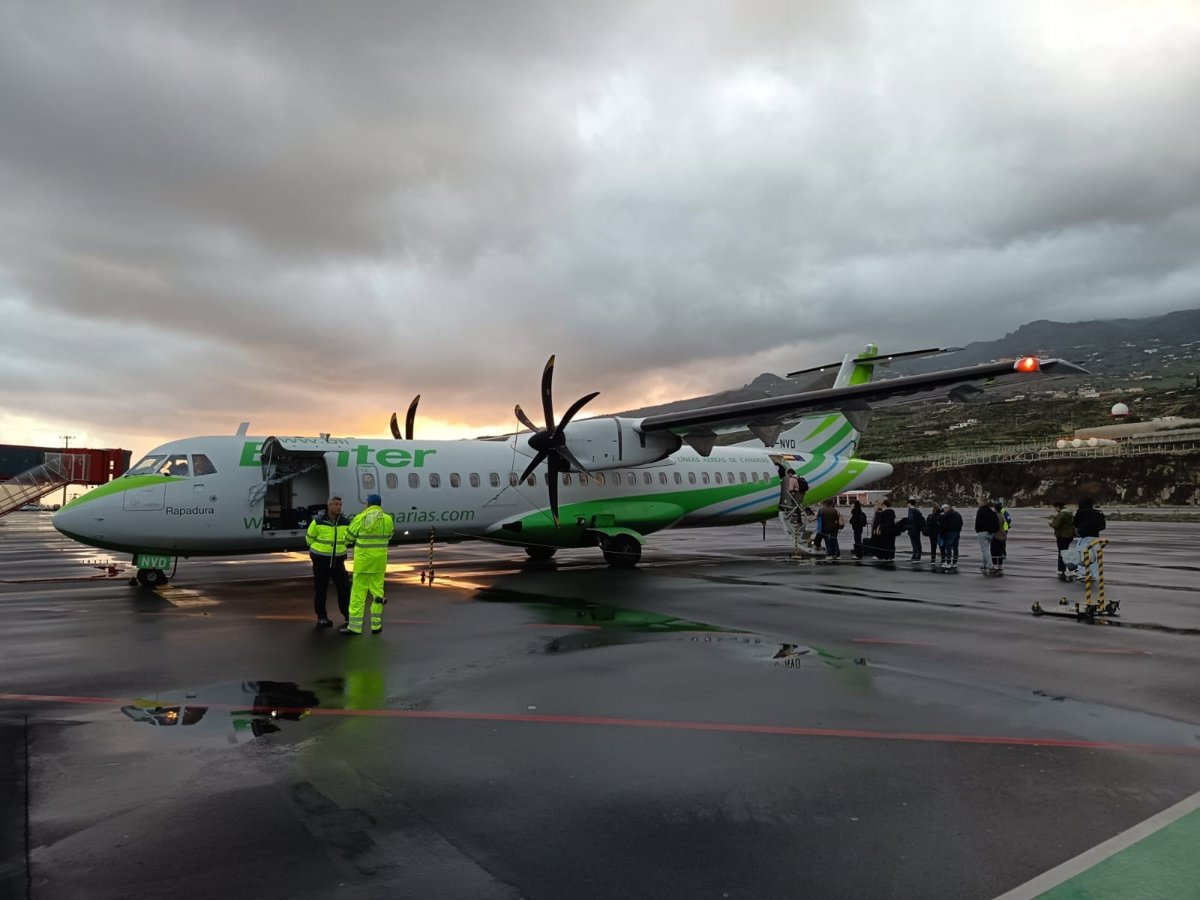 Pasajeros de un vuelo a Tenerife Norte embarcan en un avión de Binter desde el aeropuerto de La Palma.