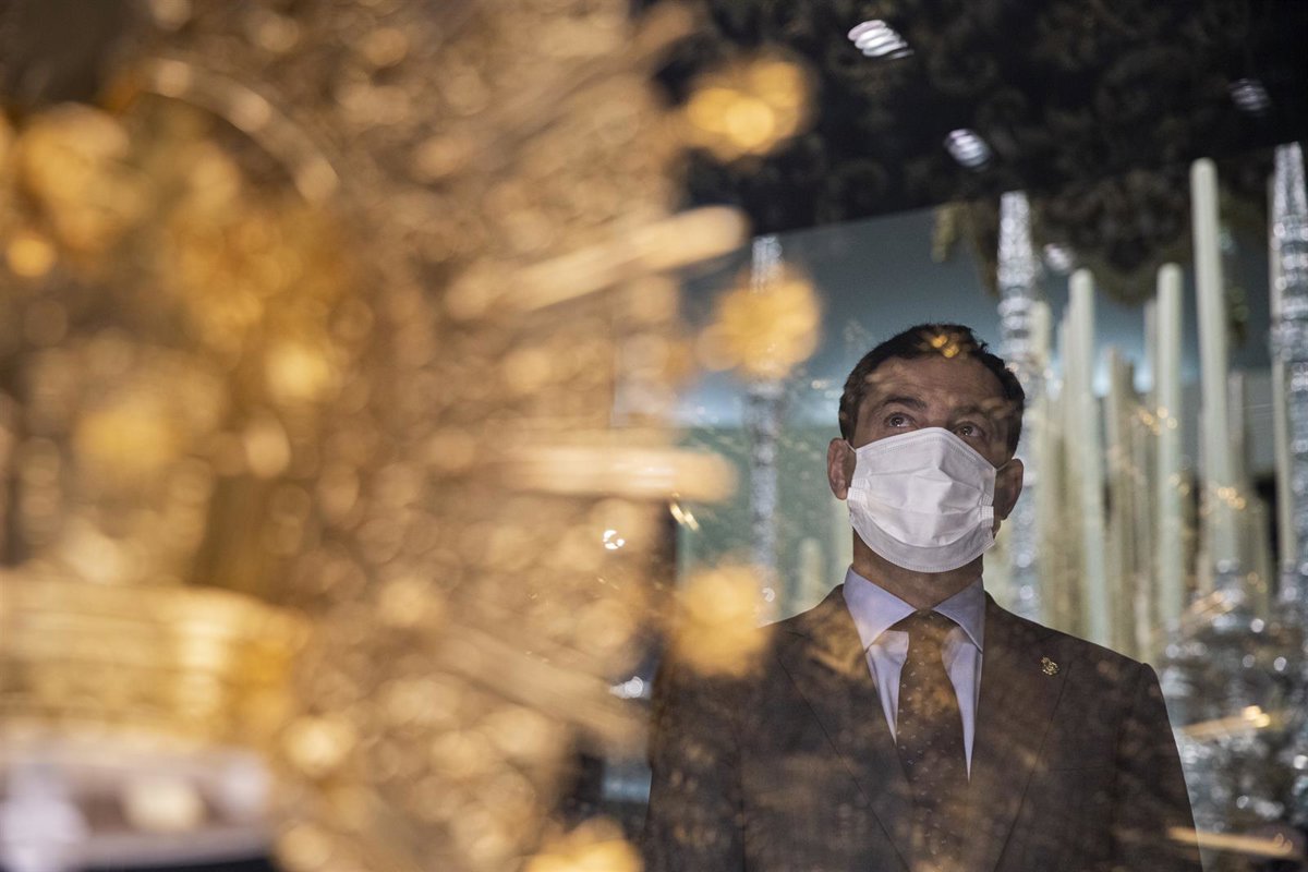 El presidente de la Junta de Andalucía, Juanma Moreno, durante la visita a la Basílica de la Macarena - María José López - Europa Press