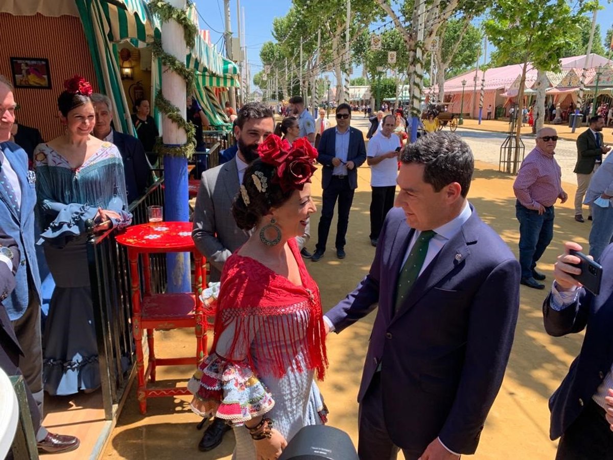 El presidente de la Junta de Andalucía, Juanma Moreno, ha calificado de "cordial" el "breve" encuentro que tuvo ayer con la candidata de Vox a la Presidencia de la Junta, Macarena Olona, durante un paseo por el real de la Feria de Sevilla.