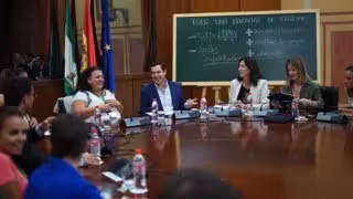 Juanma Moreno ha recordado que "en Andalucía se han perdido cerca de 8.000 docentes, que son el instrumento primordial para mejorar la calidad educativa. Significa uno de cada tres de los que se han perdido en España y no tenemos atisbo de mejorar".