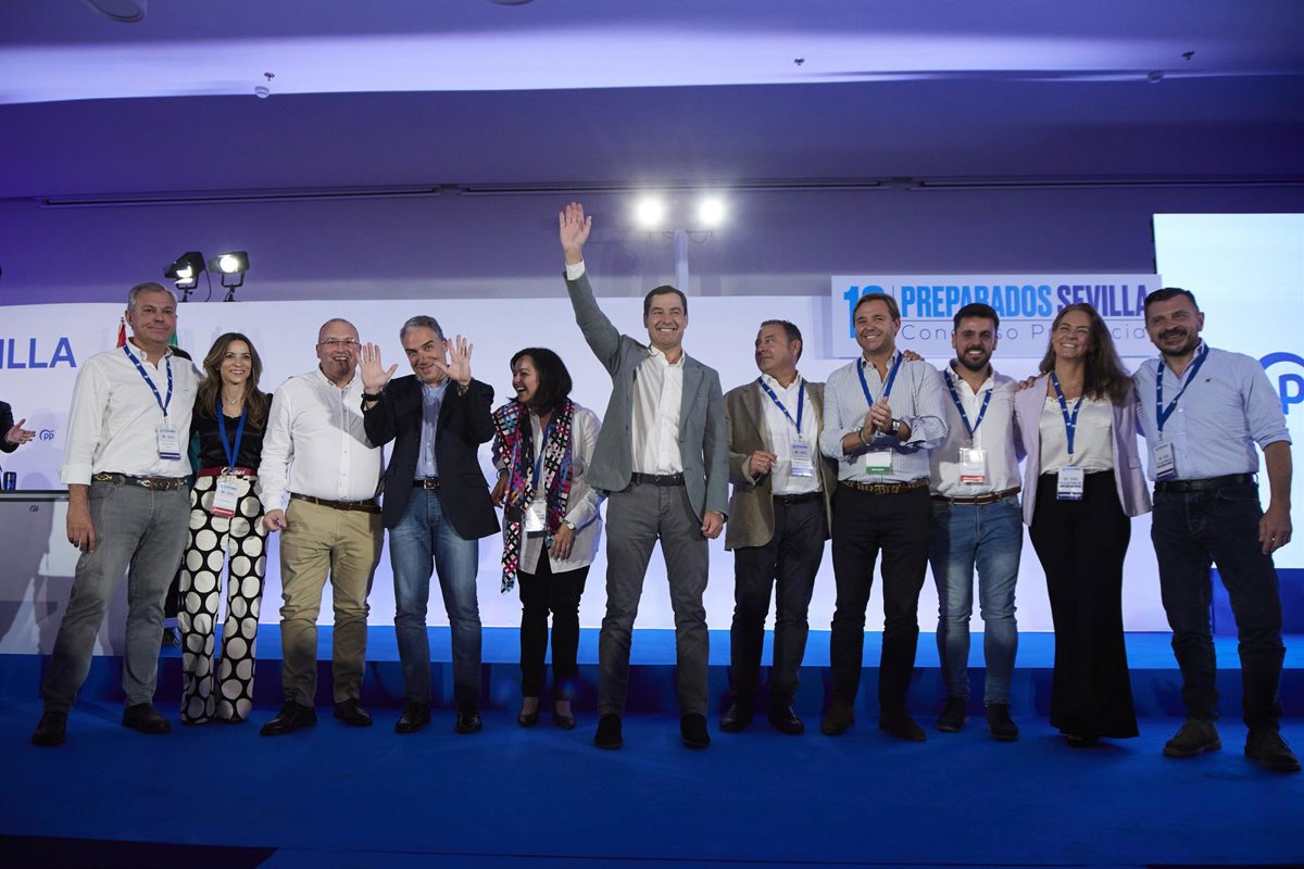 El presidente del PP andaluz, Juanma Moreno, ha pedido este domingo al PP de Sevilla trabajar para que la formación sea "líder" en las próximas dos "paradas" electorales, las municipales de mayo de 2023 y, posteriormente, las generales. "Nos jugamos muchísimo para ser una alternativa sólida. Feijóo no puede ser presidente si no hay un PP cohesionado", ha sentenciado Moreno, que ha lanzado una petición al flamante nuevo presidente de los 'populares' sevillanos: "Disfruta hoy que mañana quiero tener 107 candidatos ganadores. No quiero escuchar a nadie decir que es imposible ser alcalde. Es posible gobernar la Diputación de Sevilla", ha arengado a los cerca de 1.000 compromisarios que han asistido al congreso extraordinario del PP provincial.