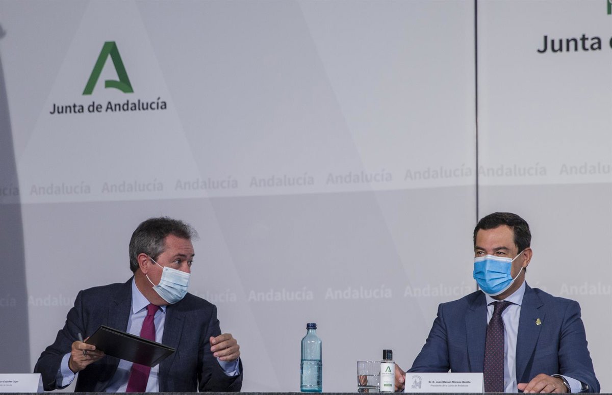 El presidente de la Junta de Andalucía, Juanma Moreno (d), junto al alcalde de Sevilla, Juan Espadas (i), en una foto de archivo. - María José López - Europa Press - Archivo