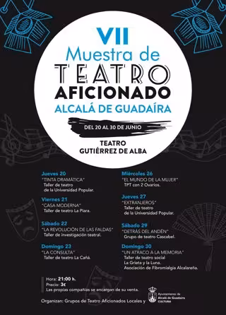 El Teatro Gutiérrez de Alba se vuelve a llenar este mes de talento, esfuerzo y mucha dedicación en la 'VII Muestra de Teatro Aficionado de Alcalá de Guadaíra' que acogerá ocho representaciones que comenzarán este jueves y finalizarán el día 30 de junio.