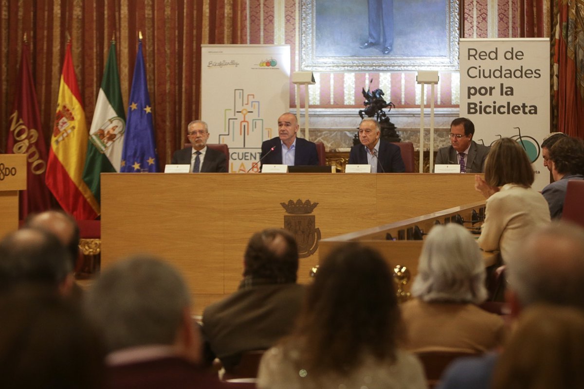 En el acto, Muñoz ha estado acompañado por el presidente de esta red, Antoni Poveda, el delegado municipal de Hábitat Urbano y Cohesión Social, Juan Manuel Flores, y el delegado de Gobernación, Fiestas Mayores y Área Metropolitana, Juan Carlos Cabrera, en un Salón Colón "repleto de participantes" procedentes de las distintas ciudades que conforman esta alianza de impulso a la bicicleta.
