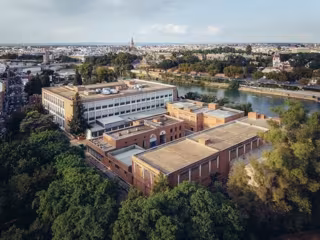Vista aérea del complejo de Altadis en Los Remedios, en Sevilla. - AYUNTAMIENTO DE SEVILLA