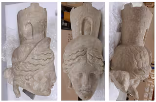 Detalle de una escultura protagonizada por una cabeza femenina. - MINISTERIO DE CULTURA