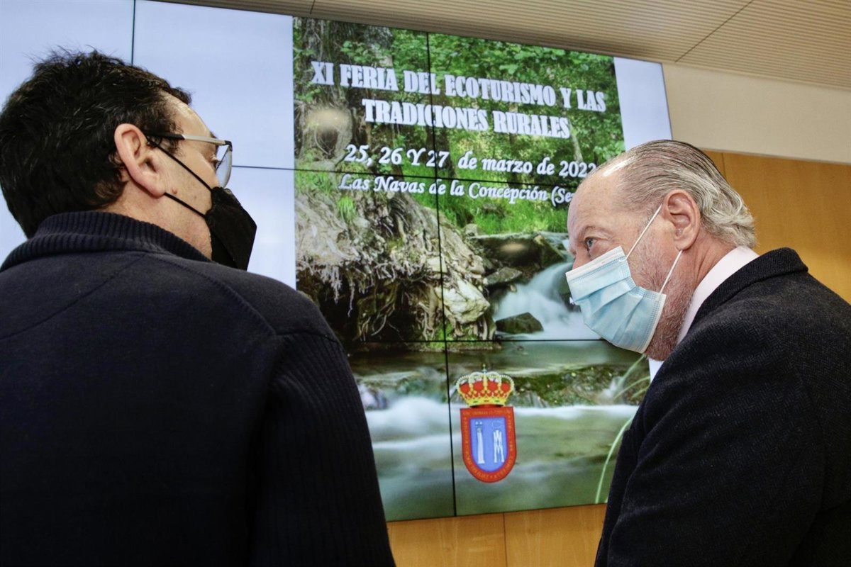 El presidente de la Diputación de Sevilla, Fernando Rodríguez Villalobos, ha presentado junto al alcalde de Las Navas de la Concepción, Andrés Barrera, la XI edición de la Feria del Ecoturismo y las Tradiciones Rurales, que tras ser aplazada el pasado año a causa de la pandemia, se celebrará el próximo fin de semana en ese municipio de la Sierra Morena sevillana.