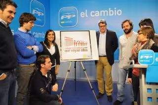 En el cartel de esta iniciativa puede verse una cola de parados en la Oficina de Empleo con los rostros de miembros del Gobierno de la Nación como José Luis Rodríguez Zapatero, Alfredo Pérez Rubalcaba, Elena Salgado, José Blanco, Manuel Chaves y Leire Pajín. También aparece el presidente en funciones de la Generalitat, José Montilla. "Que vayan ellos", se apunta en el citado cartel, en el que también se solicita "elecciones generales ya".