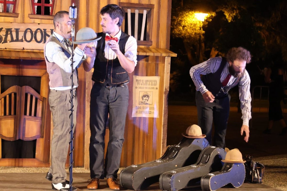 En este sentido, anoche martes el Parque de Oromana se llenaba con las aventuras de la ruta guiada teatralizada 'Alicia en el Guadaíra', inspirado en el famoso libro 'Alicia en el país de las maravillas', pero centrado el patrimonio alcalareño, que está siendo un gran éxito. A ello se ha unido la alegría de la música y la puesta en escena con el clown y las acrobacias de 'La Banda de Otro' con su montaje 'YEE HA', centrado en el viejo oeste de 'Andalusiana', que hizo disfrutar a las familias en este escenario también tradicional ya de Noctaíra.