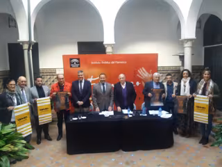 En el acto han estado el delegado del Gobierno de la Junta de Andalucía en Sevilla, Ricardo Sánchez, el alcalde de Mairena del Alcor, Juan Manuel López, el director del IAF, Ricardo Pachón, el representante de la Cátedra de Flamencología de la Universidad de Sevilla, Calixto Sánchez, y el responsable del proyecto 'Al cante en la Escuela', José Manuel Castillo.