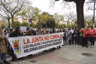 Tal y como se anunció en la protesta que tuvo lugar el pasado 21 de noviembre, Las AMPA, padres, madres y familiares de los diferentes centros educativos palaciegos, así como representantes de la corporación municipal, con el alcalde Juan Manuel Valle a la cabeza, han vuelto a concentrarse este jueves a las puertas de la Delegación Territorial de Educación en Sevilla, demandando "respuestas" y soluciones por parte de la Junta de Andalucía a las necesidades urgentes que existen en los diferentes centros de la localidad.