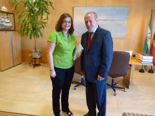El presidente de la Diputación de Sevilla, Fernando Rodríguez Villalobos, ha recibido esta mañana en la sede provincial a Angélica Chaparro, nueva delegada de la Asociación Víctimas del Terrorismo en la provincia de Sevilla desde hace cinco meses.