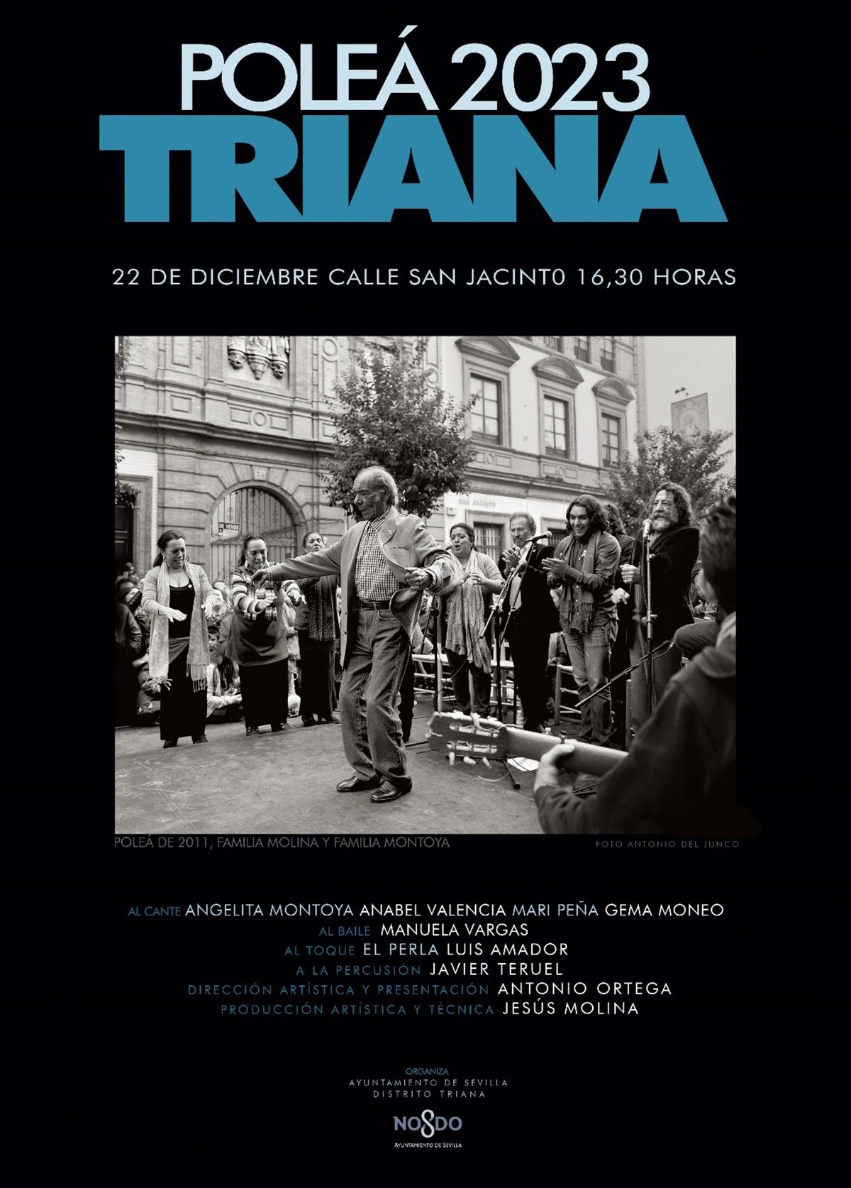 La Poleá de Triana 2023 contará con Angelita Montoya, Anabel Valencia, Mari Peña y Gema Moneo al cante; al baile estará Manuela Vargas y al toque, Luis Amador "El Perla". Por su parte, Javier Teruel estará a la percusión. La dirección artística y presentación estarán a cargo de Antonio Ortega y la producción artística y técnica será conducida por Jesús Molina.