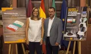 La concejala de Igualdad, Juventud y Relaciones con la Comunidad Universitaria del Ayuntamiento de Sevilla, Myriam Díaz (PSOE), y el gerente de Tussam, Rubén García, han presentado este jueves la nueva 'Tarjeta Estudiantes' de transporte, que con "mayor alcance y cobertura", sustituye a la tarjeta universitaria municipal.
