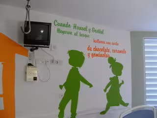 Una vez alcanzados los criterios de alta pasarán a una habitación hasta que estén en condiciones de desplazarse a su domicilio. El hospital ha personalizados estas habitaciones con ilustraciones de cuentos clásicos infantiles con el fin de que los niños puedan restablecerse en el postoperatorio en un entorno adecuado.