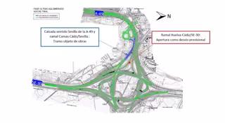 De este modo, para facilitar la circulación, además de los itinerarios alternativos habilitados, se procederá a la apertura del ramal Huelva-Cádiz/SE-30 como desvío provisional. Así, en aras de disminuir las afecciones a los usuarios en el enlace de La Pañoleta, se recomiendan dos siguientes itinerarios alternativos