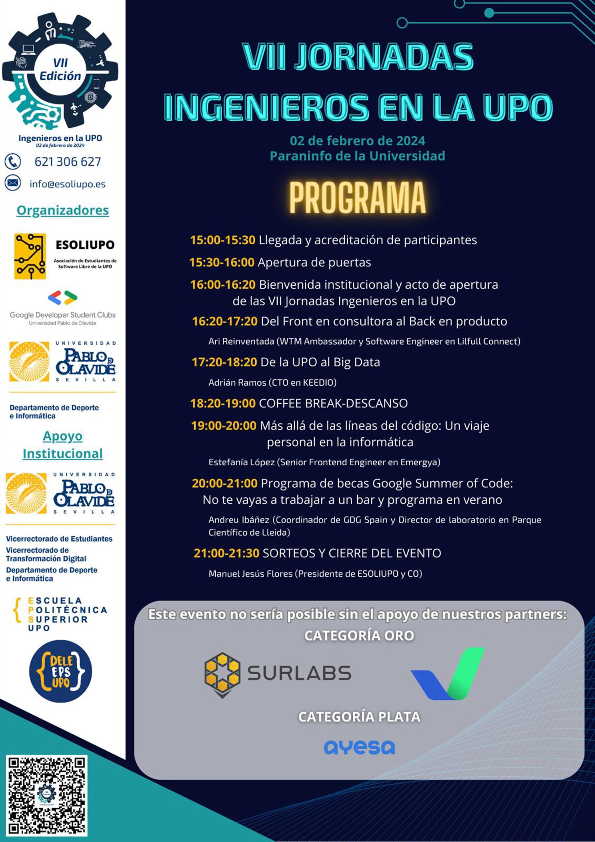 El evento, organizado en la presente edición por la Asociación de Estudiantes de Software Libre UPO (Esoliupo) con la colaboración de la Escuela Politécnica Superior (EPS), contará con la participación de cuatro ponentes que ofrecerán charlas relacionadas con el campo de la Ingeniería Informática y que expondrán cómo esta profesión les ha marcado en sus vidas.