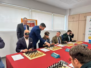 Tras la presentación, cuatro jugadores afiliados a la ONCE han realizado una demostración frente a otros cuatro jugadores del Abierto, entre ellos el gran maestro Daniel Cámpora, y las autoridades participantes, con el antifaz puesto, han podido conocer la dinámica del ajedrez adaptado y ponerse en la piel de una persona ciega jugando.