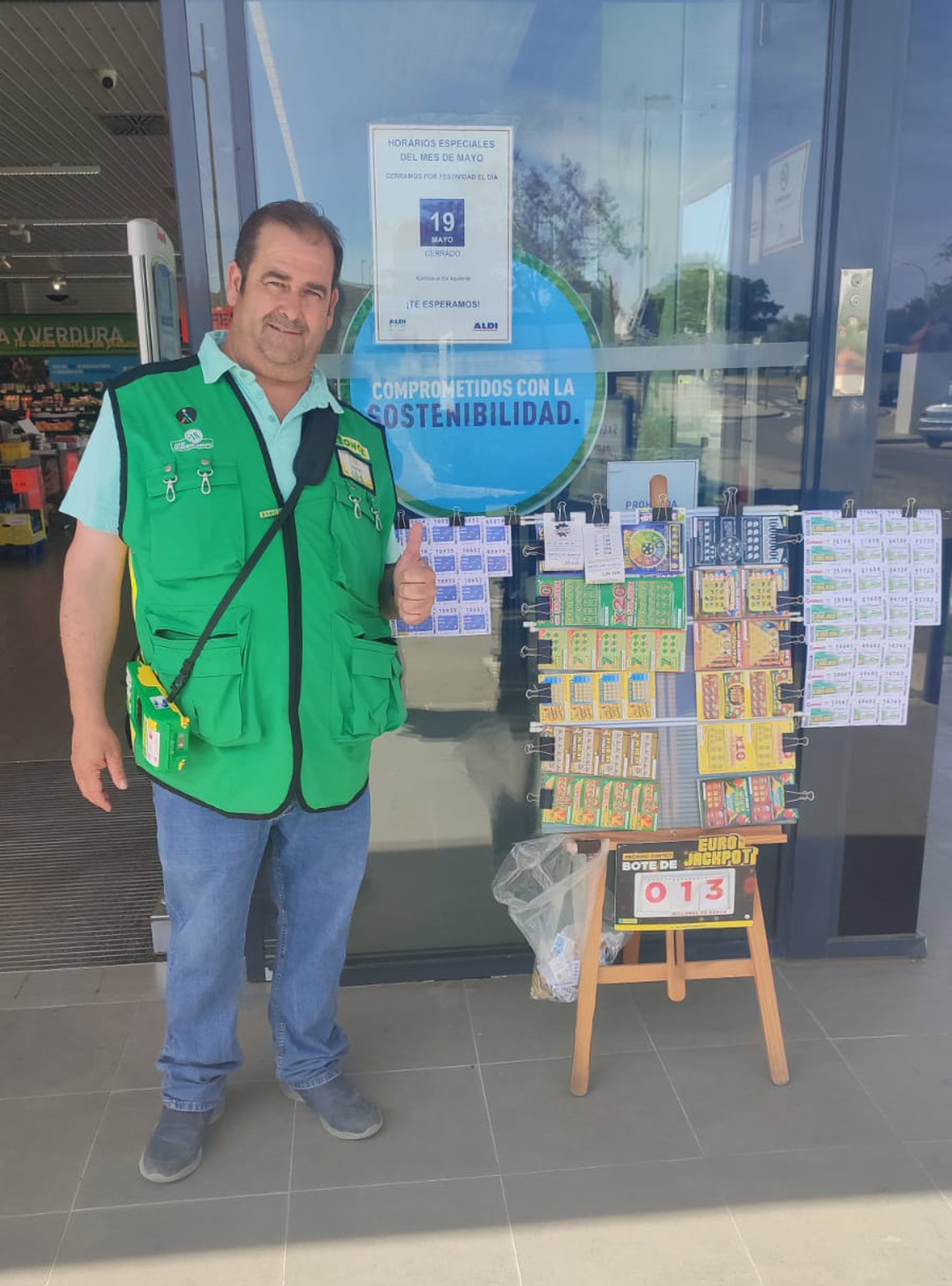 Jesús Alfonso es vendedor de la ONCE desde hace dos años y ha llevado la suerte y la ilusión de la ONCE a 16 de sus clientes habituales, que se han repartido 1.025.000 euros. El cupón de la ONCE del 8 de mayo, dedicado a la Feria Nacional del Vino (Fenavin), ha dejado también un premio de 35.000 euros en La Línea de la Concepción (Cádiz); y otros dos premios de igual cantidad en Zamora y Girona.