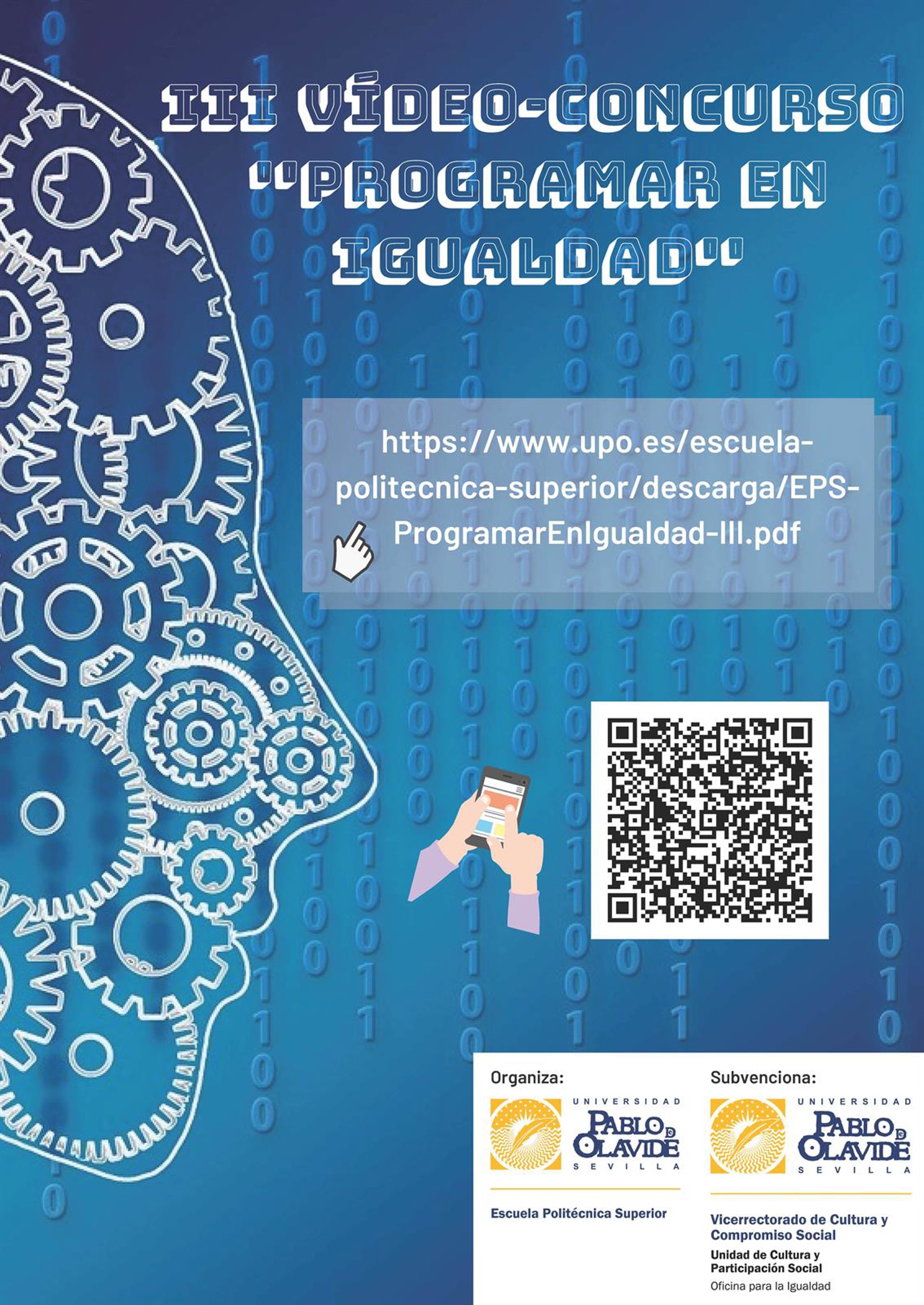 La Universidad Pablo de Olavide lanza la III edición del Vídeo-Concurso 'Programar en Igualdad', una iniciativa para promocionar, dentro del ámbito educativo y con respecto al grado de Ingeniería Informática en Sistemas de Información, la igualdad entre hombres y mujeres y erradicar los estereotipos que existen en las carreras profesionales a través del uso de las nuevas tecnologías, que se dirige al alumnado de los Centros de Educación Secundaria de la provincia de Sevilla del curso 2019/2020.