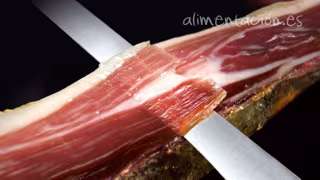 Bajo el epígrafe 'Cómo cortar el jamón' se presentan, a través de textos e ilustraciones, todos los pasos para seguir un correcto proceso de corte y disfrutar de todos su sabor, aroma y textura. Se detallan los tipos de cuchillos adecuados, las partes del jamón, su colocación para iniciar el proceso de corte, y la forma de cortar las lonchas, así como una serie de consejos útiles para su conservación y degustación.