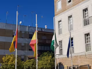 Banderas a media asta en Los Palacios este sábado. - AYUNTAMIENTO DE LOS PALACIOS