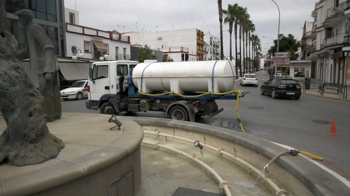 El agua de las piscinas municipales se está usando para llenar las fuentes ornamentales de Los Palacios. - AYUNTAMIENTO LOS PALACIOS