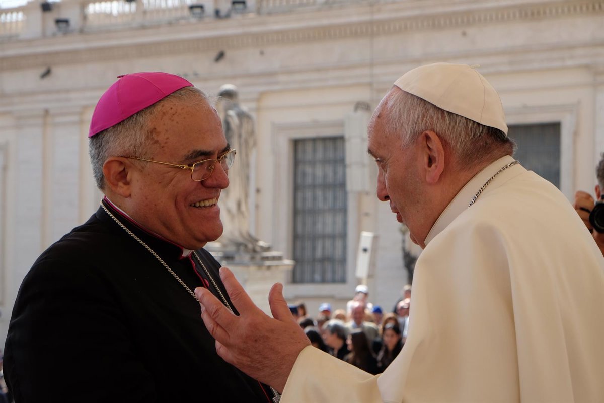 El Papa Francisco ha recibido este miércoles en audiencia al obispo de Córdoba, Demetrio Fernández, quien le ha presentado un cuadro de San Juan de Ávila, doctor de la Iglesia, obra de la pintora montillana, Maria José Ruiz López, y donado al Papa por el Ayuntamiento de la localidad cordobesa de Montilla.