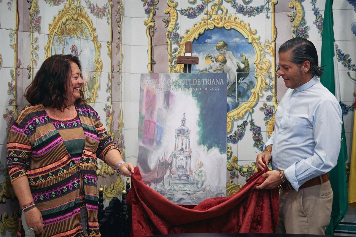 La sede del Distrito Triana del Ayuntamiento de Sevilla ha acogido este miércoles la presentación del cartel del Corpus Chico que, en esta edición, es obra del párroco de Santa Ana, Ildefonso Milla, y que "recrea la explosión de luz y color que esta conmemoración representa para los trianeros y sevillanos".