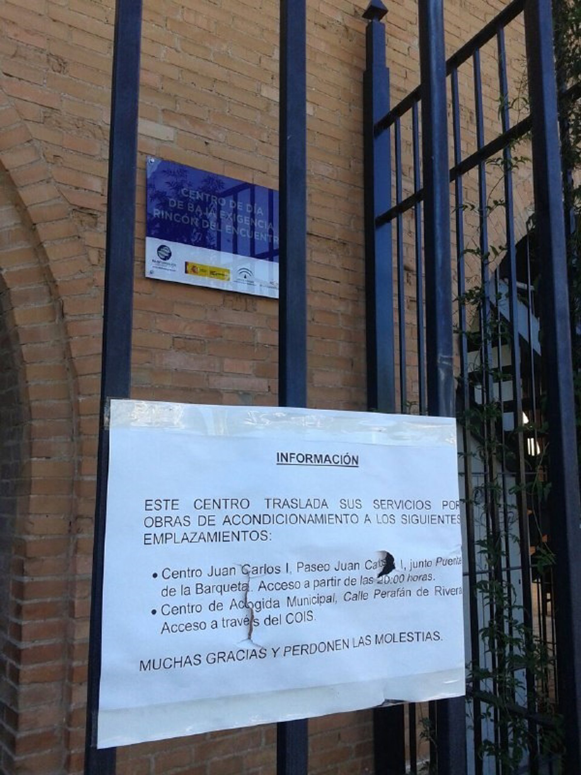 Indica que el cartel colocado a sus puertas detalla que este centro "traslada sus servicios por obras de acondicionamiento", un cartel en el que añade que "no aparece ningún logo del Ayuntamiento, ni de la empresa que se encarga de su gestión, 'Grupo 5'". "Con total oscurantismo y falta de información han vuelto a cerrar el centro que el Ayuntamiento decía en marzo que no tenía ningún problema", ha denunciado Honorato.