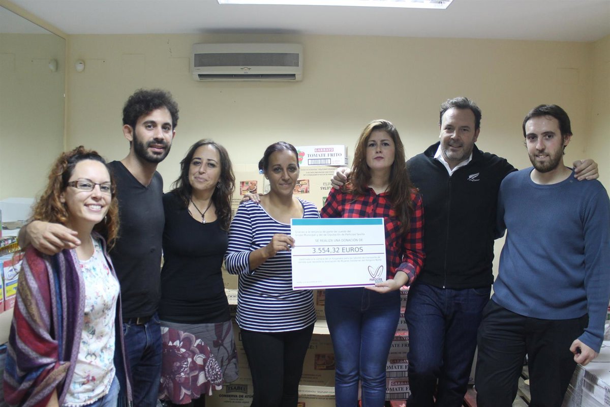 Participa Sevilla ha donado a la asociación Mujeres Solidarias del Polígono Norte un total de 3.554,32 euros, cantidad que corresponde al dinero que concejales y personal eventual, tanto en el Ayuntamiento como en la Diputación, "recibieron en agosto por encima de los tres salarios mínimos interprofesionales (SMI)".