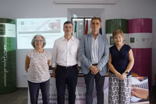 Rodrigo Rodríguez Hans, el alcalde de El Pedroso, Sergio Vela, la secretaria de la Unión UATAE Andalucía, María Gutiérrez, y Carmen Bendala, - PRODETUR