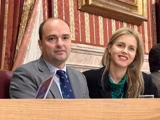 Cristina Peláez, junto a Gonzalo García de Polavieja, en el Salón de Plenos del Ayuntamiento. - VOX