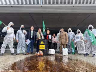 Con motivo de la reunión, Ecologistas en Acción y la asociación de afectados han llevado a cabo una "simulación de vertido" y un acto a las puertas de la Delegación, como muestra de su rechazo ante la falta de medidas efectivas para mitigar el impacto ambiental y sanitario en la zona y en demanda de soluciones a las administraciones.