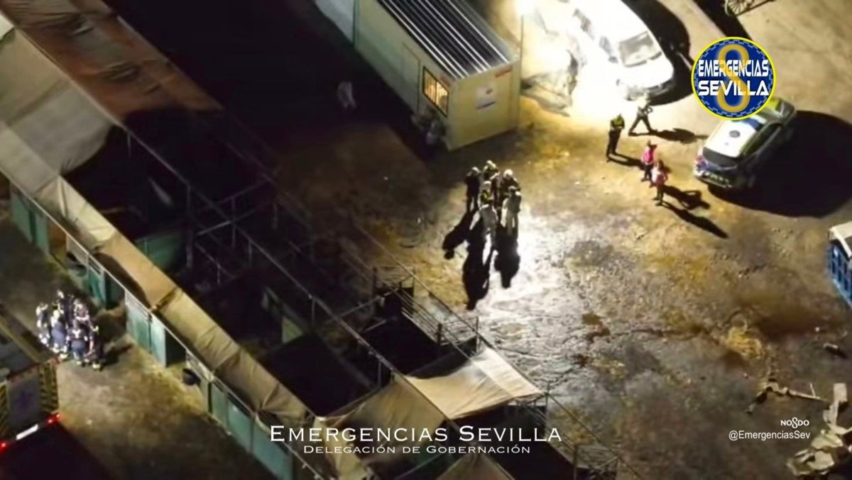 El fuego, declarado al filo de las 23,59 horas de este pasado miércoles, afectó a ocho de los más de 200 boxes de la cuadra, ubicada a espaldas de la estación de metro de Blas Infante, actuando primero el personal de las cuadras utilizando extintores, cortando lonas para que no prendieran y sacando a los animales; y después de Protección Civil y de los Bomberos.