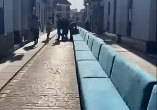 En esta ocasión, una veintena de empresas ha puesto su mano de obra e instalaciones de forma desinteresada para realizar en los últimos meses un sofá de 500 metros lineales, compuesto por 250 módulos.