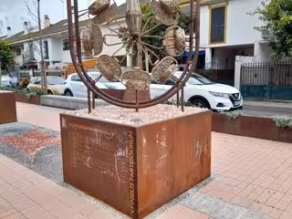 Varios de los pedestales de las reproducciones a gran escala de las piezas del famoso tesoro de El Carambolo, instaladas en la calle Almería del barrio homónimo de Camas (Sevilla) a modo de museo al aire libre sobre el citado ajuar áureo, han sido objeto de visibles pintadas con tiza, si bien desde el Ayuntamiento de dicha localidad han manifestado a Europa Press que los pedestales serán limpiados.