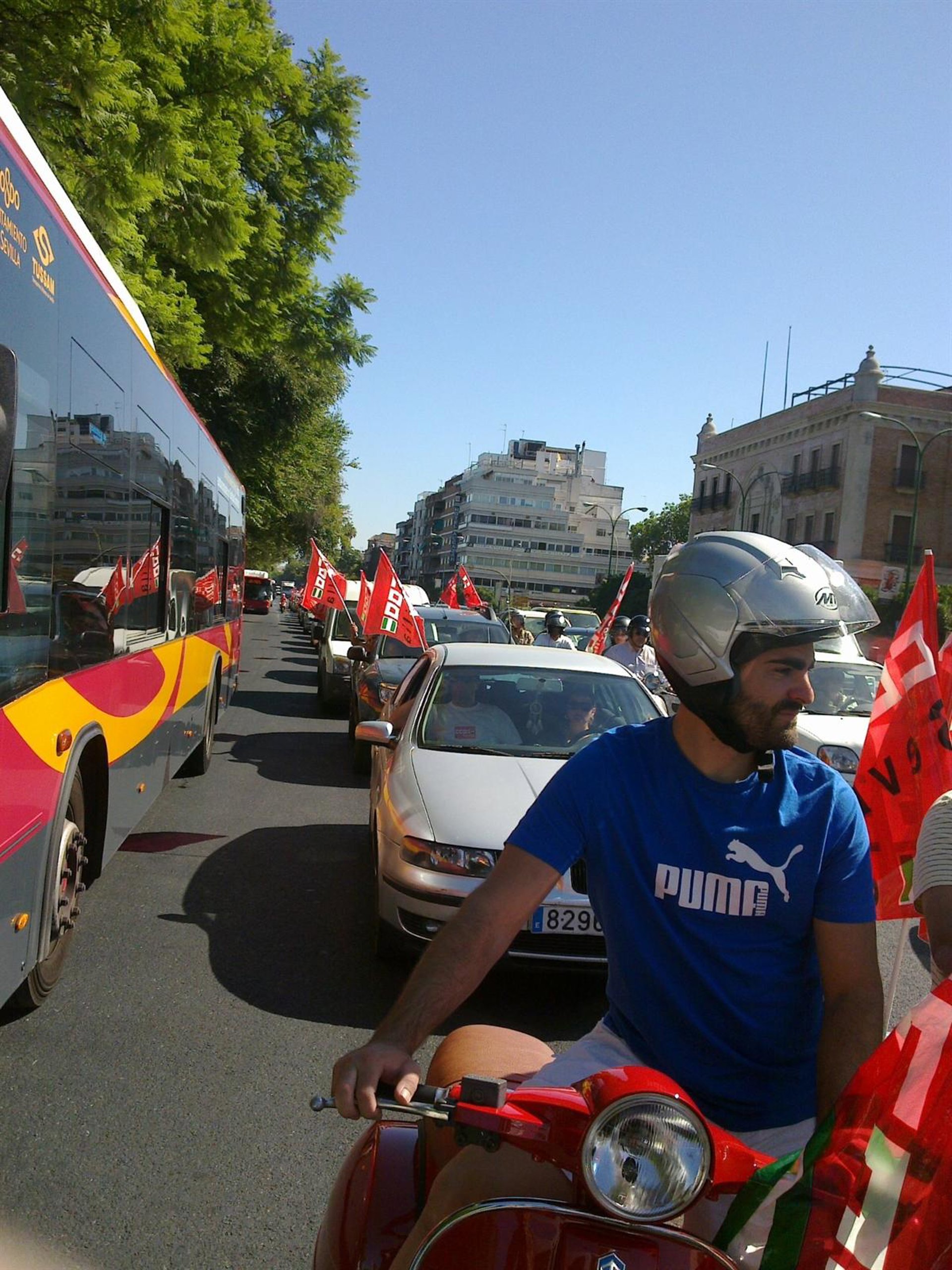 Domínguez ha explicado que la caravana, celebrada "sin incidentes", se ha detenido en la calle Luis Montoto ante la sede del PSOE de Sevilla y en la avenida de la República de Argentina ante la sede de la Delegación provincial de la Consejería de Empleo. Ante cada una de estas sedes, los manifestantes han utilizado el claxon de sus vehículos para dedicar "una pitada" tanto a la cúpula provincial socialista como a los responsables de la Consejería de Empleo.