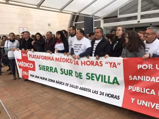 La Plataforma Médico 24 Horas ¡Ya!, que reclama un nuevo punto de urgencias sanitarias en la Sierra Sur de Sevilla que funcione 24 horas al día complementando al que ya existe en Estepa, ha celebrado este jueves una concentración ante el hospital de Osuna, en demanda de que el Servicio Andaluz de Salud (SAS) garantice la asistencia de pediatría en todos los municipios de la zona.